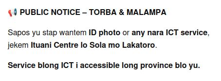 To achieve its mission of bringing ICT services to the doorsteps of Vanuatu’s rural and remote communities, Ituani has plans to set up in each province of Vanuatu. So far, Ituani has established a presence in Sanma Province, Malampa Province, and Torba Province